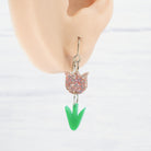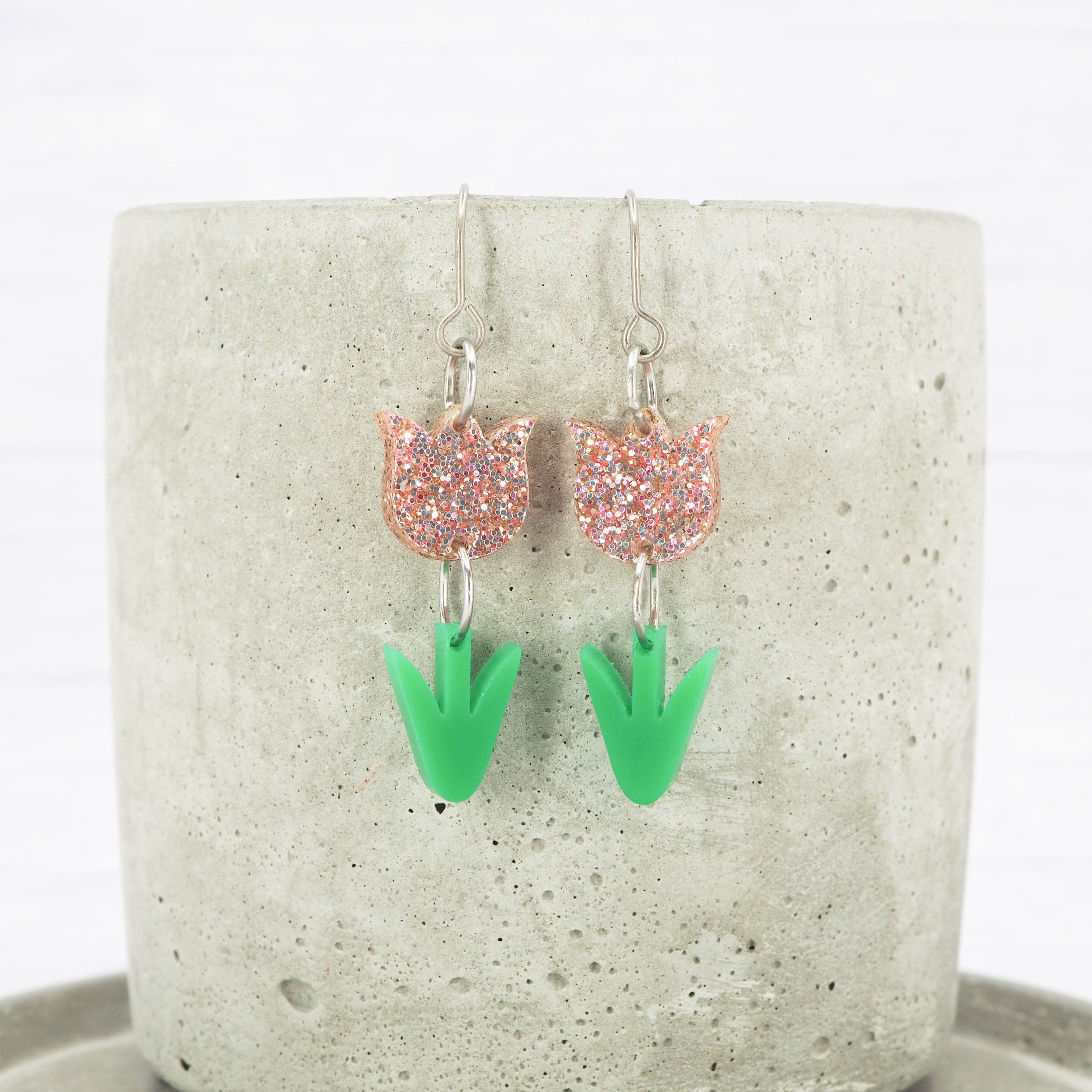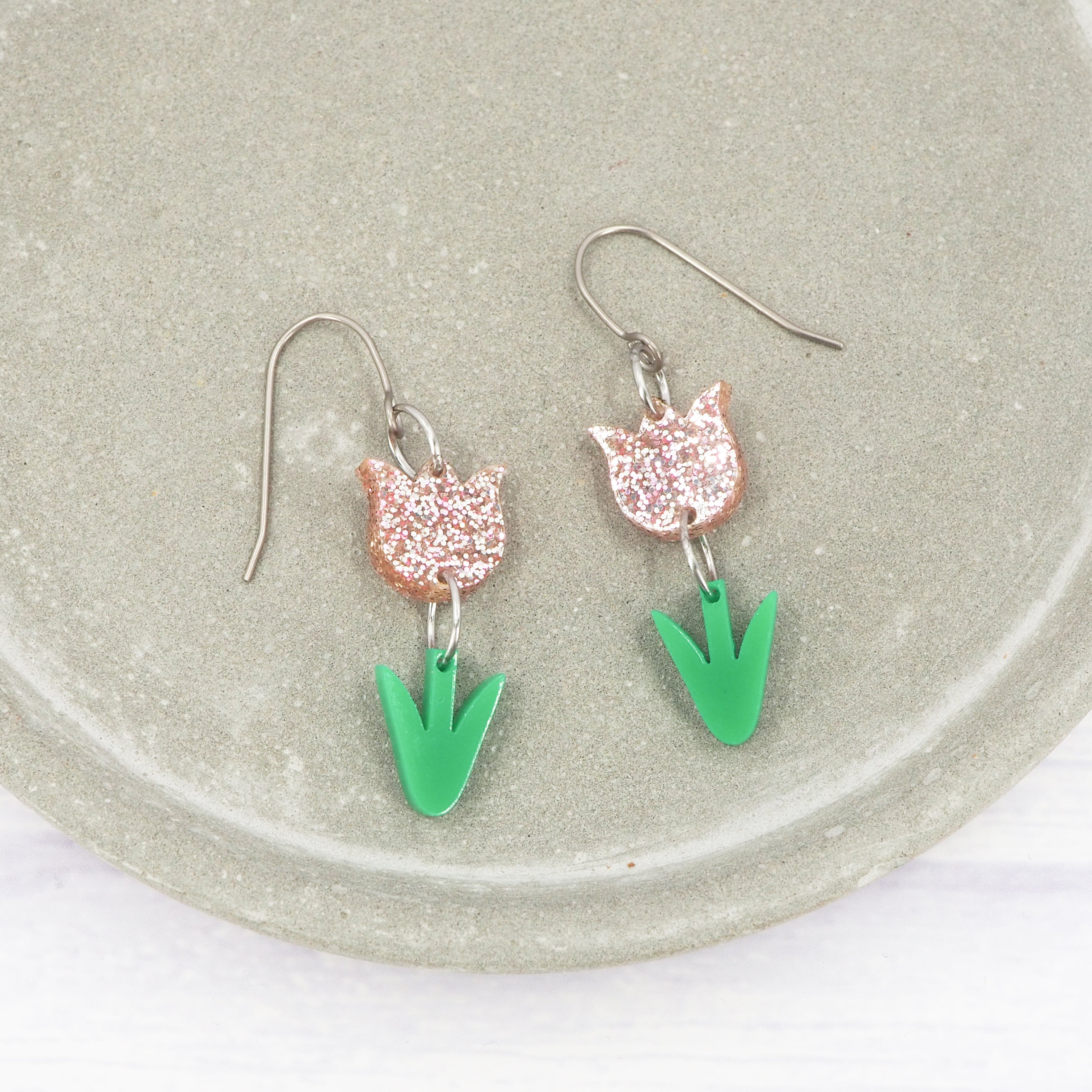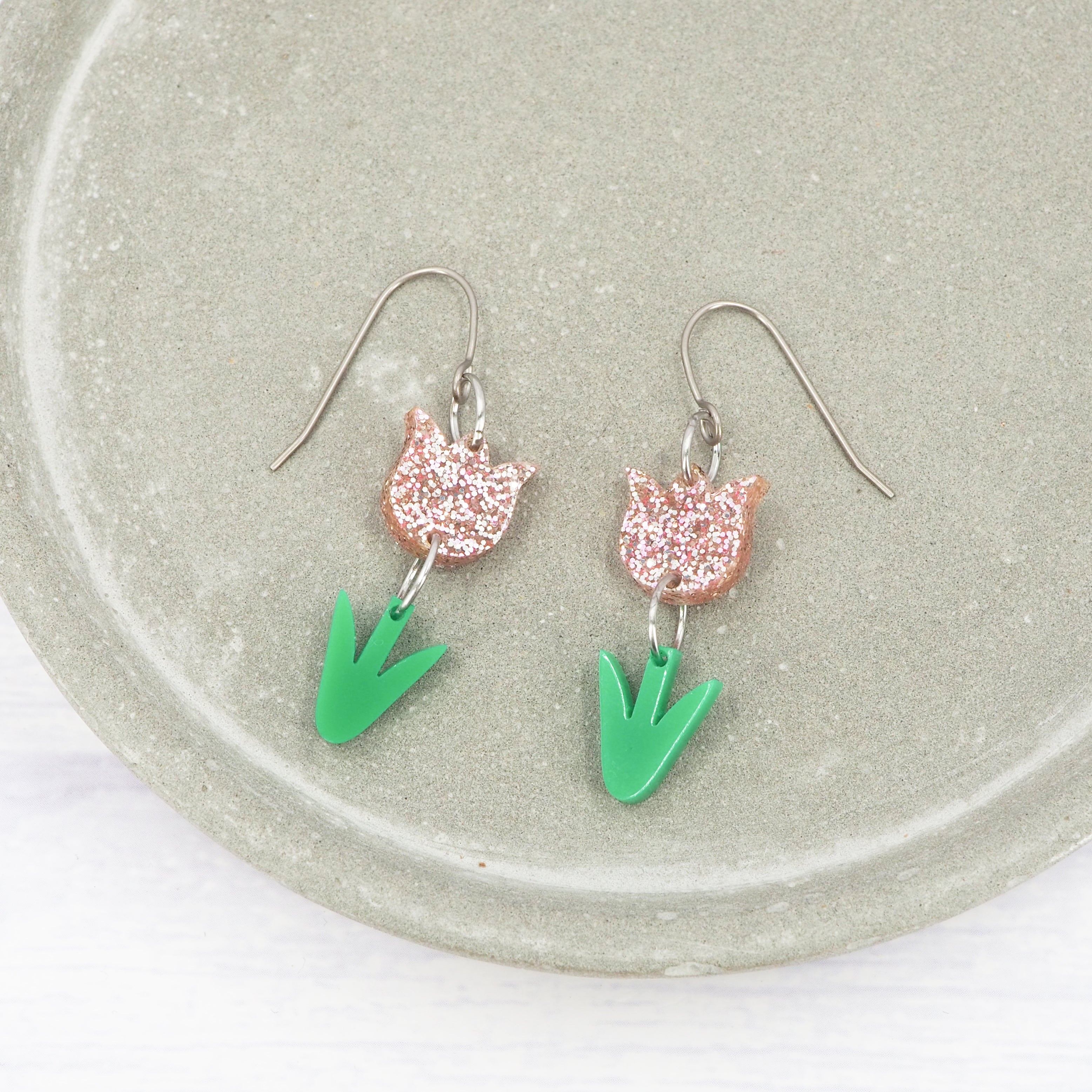 The earrings have a total drop length of 1.8" (4.6cm) from the top of the ear wire to the bottom of the flowers.