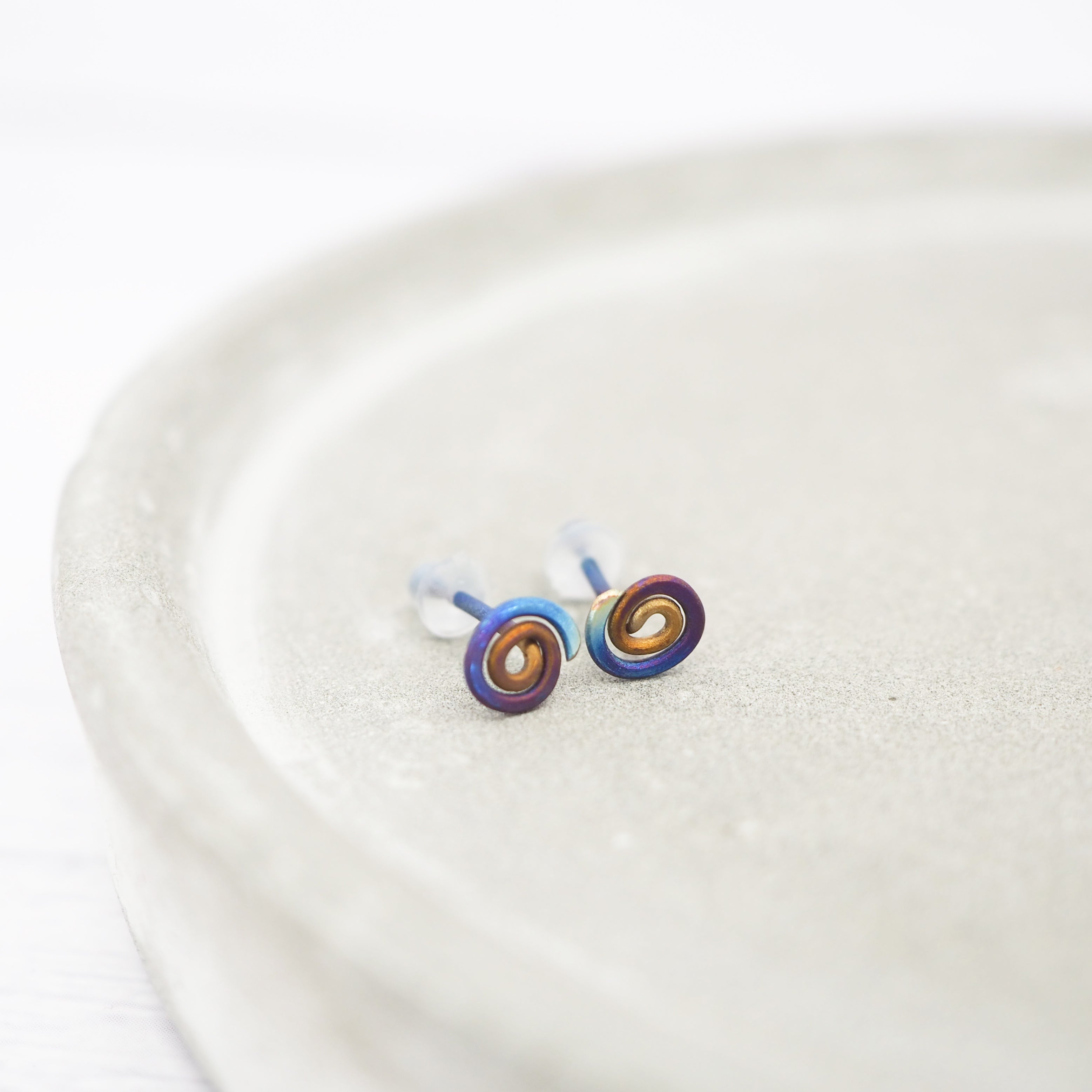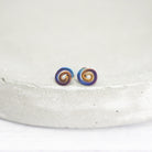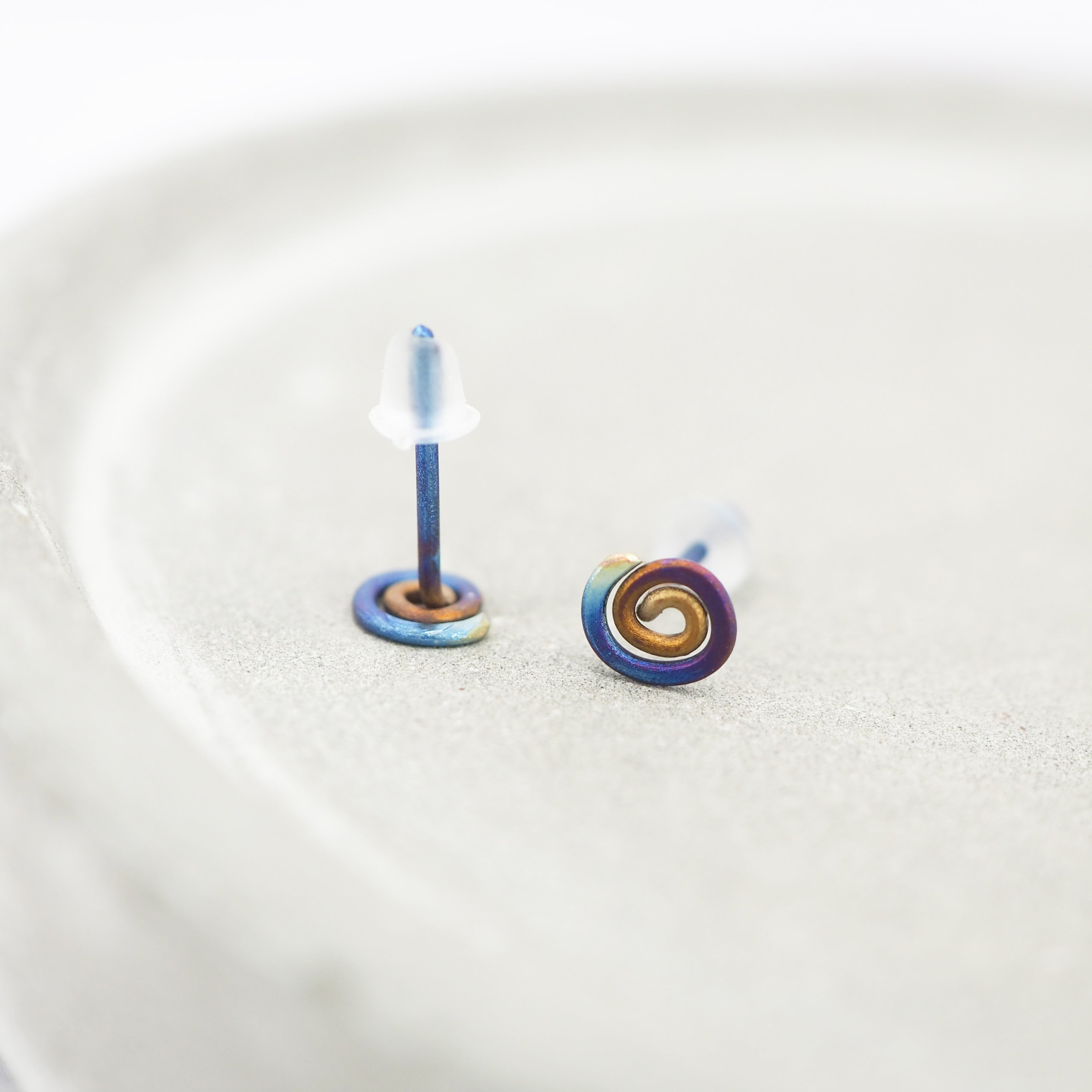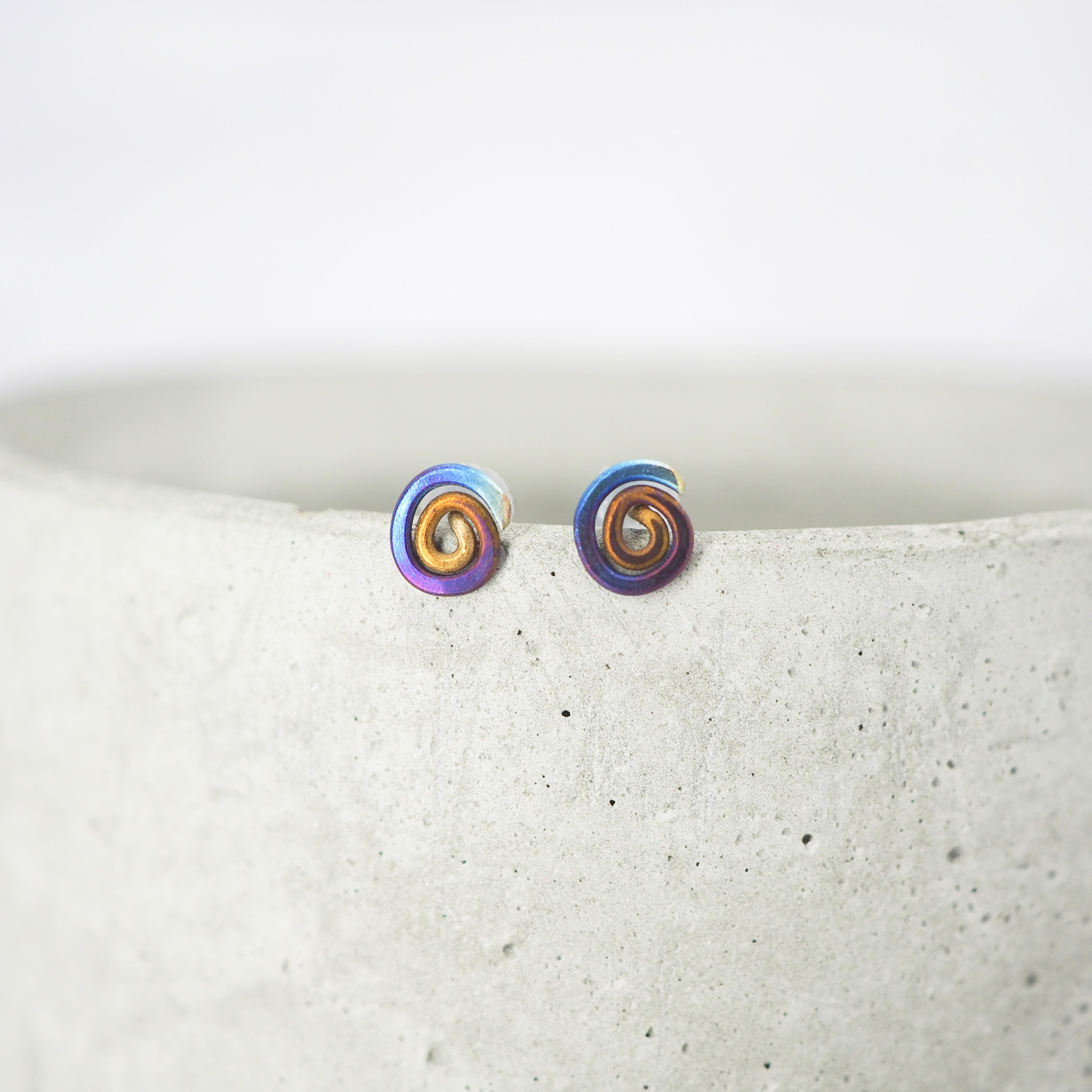 Titanium small anodised spiral stud earrings