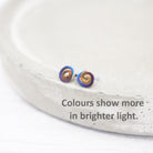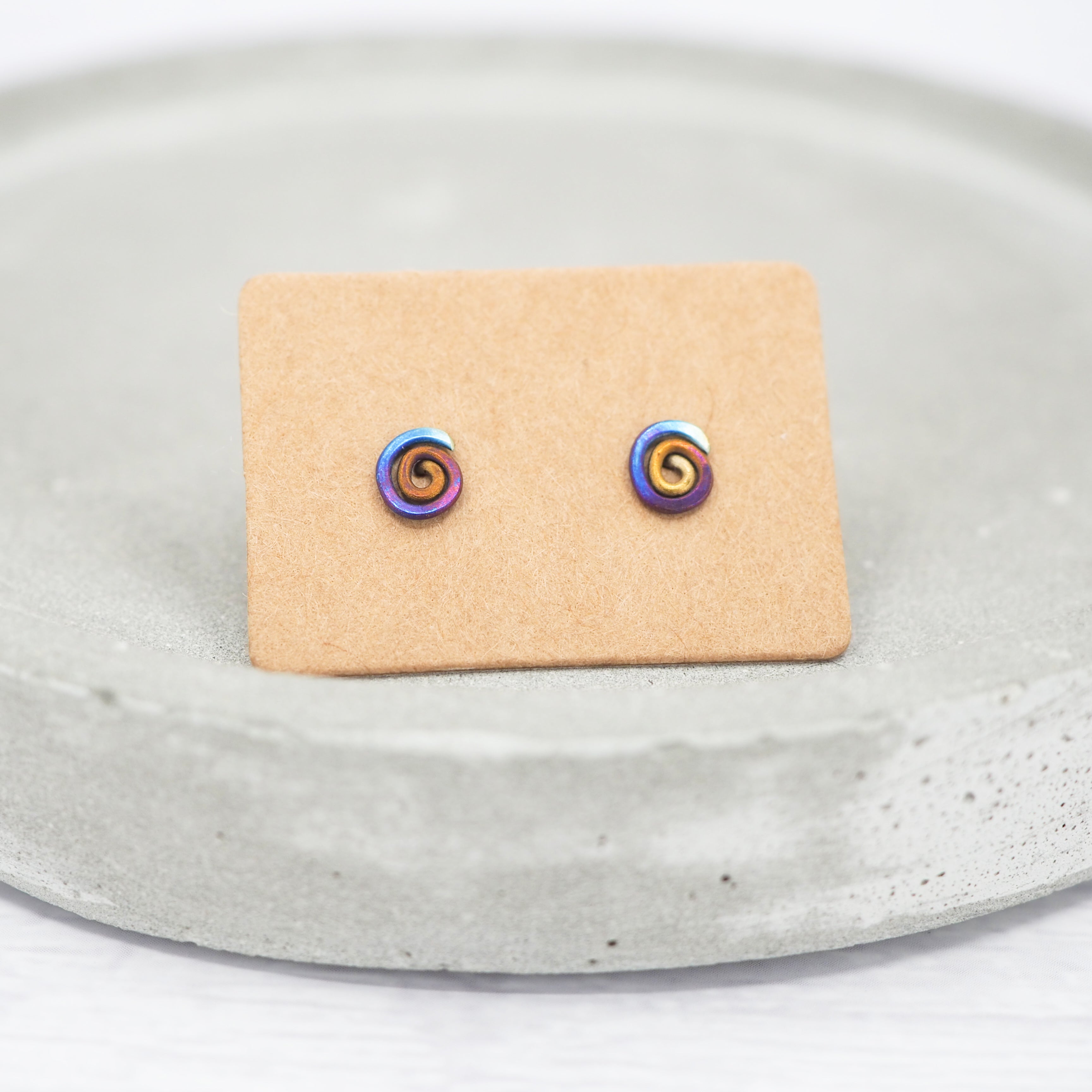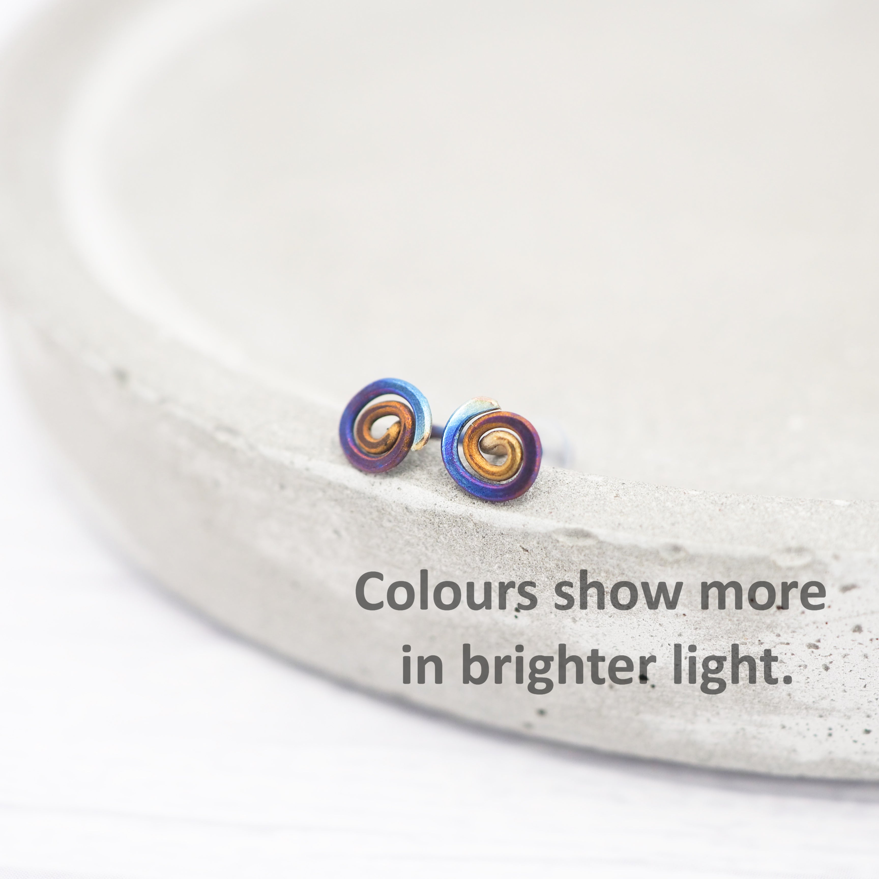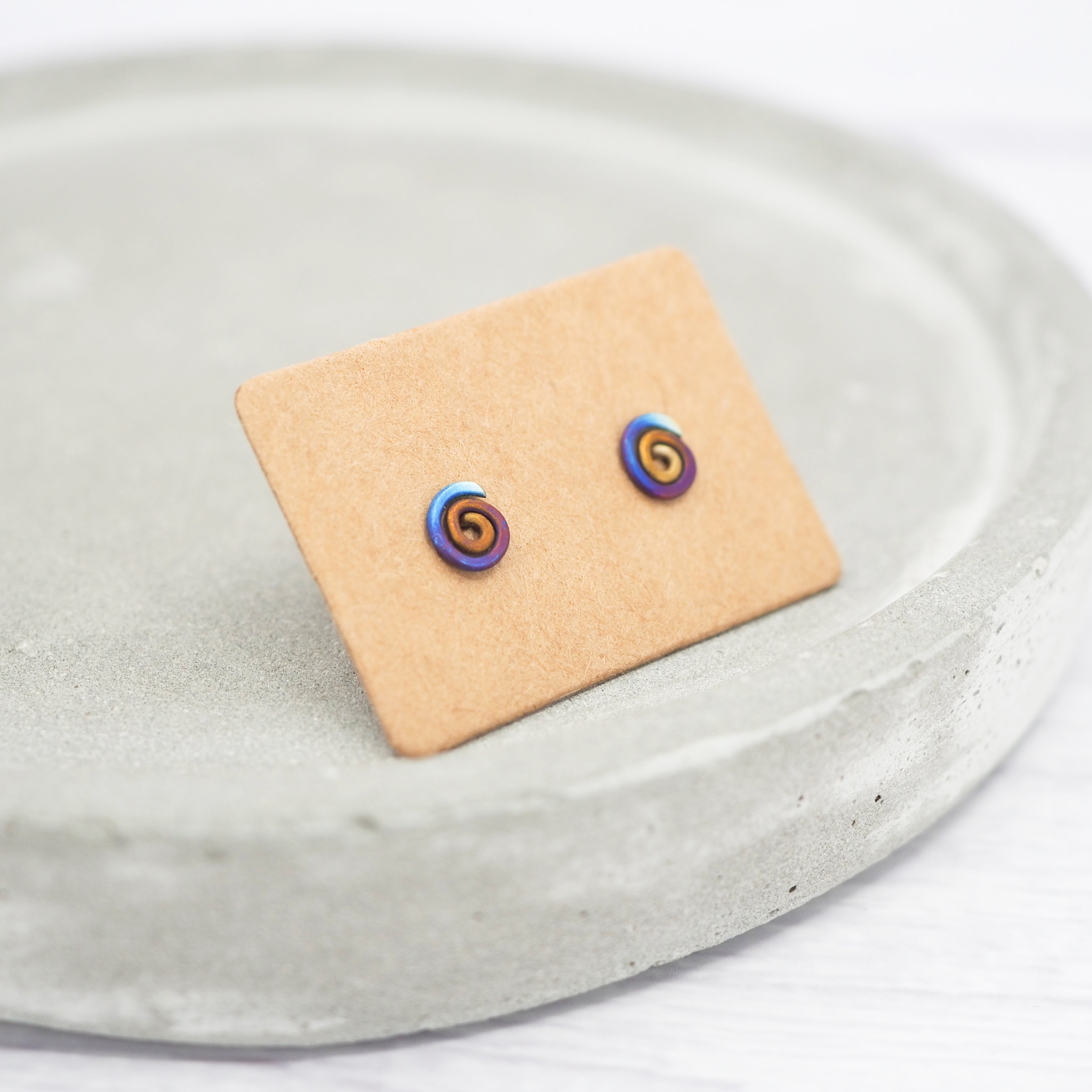 Titanium small anodised spiral stud earrings