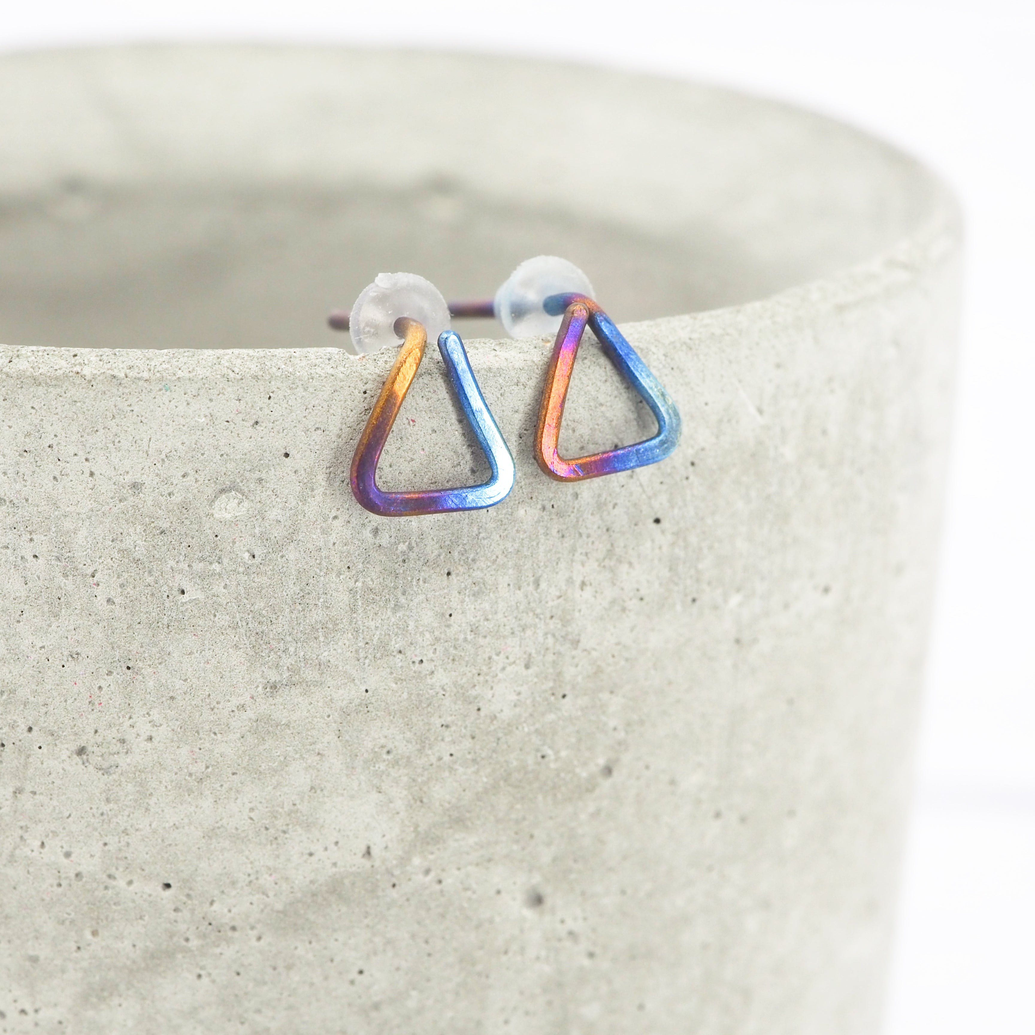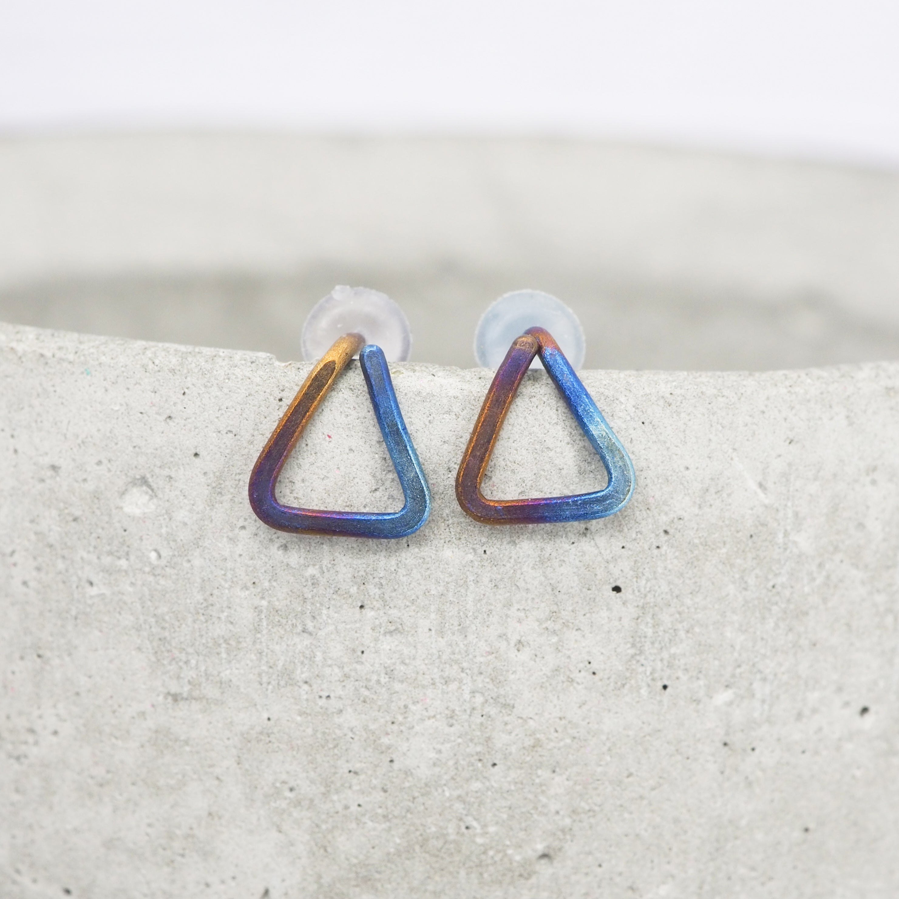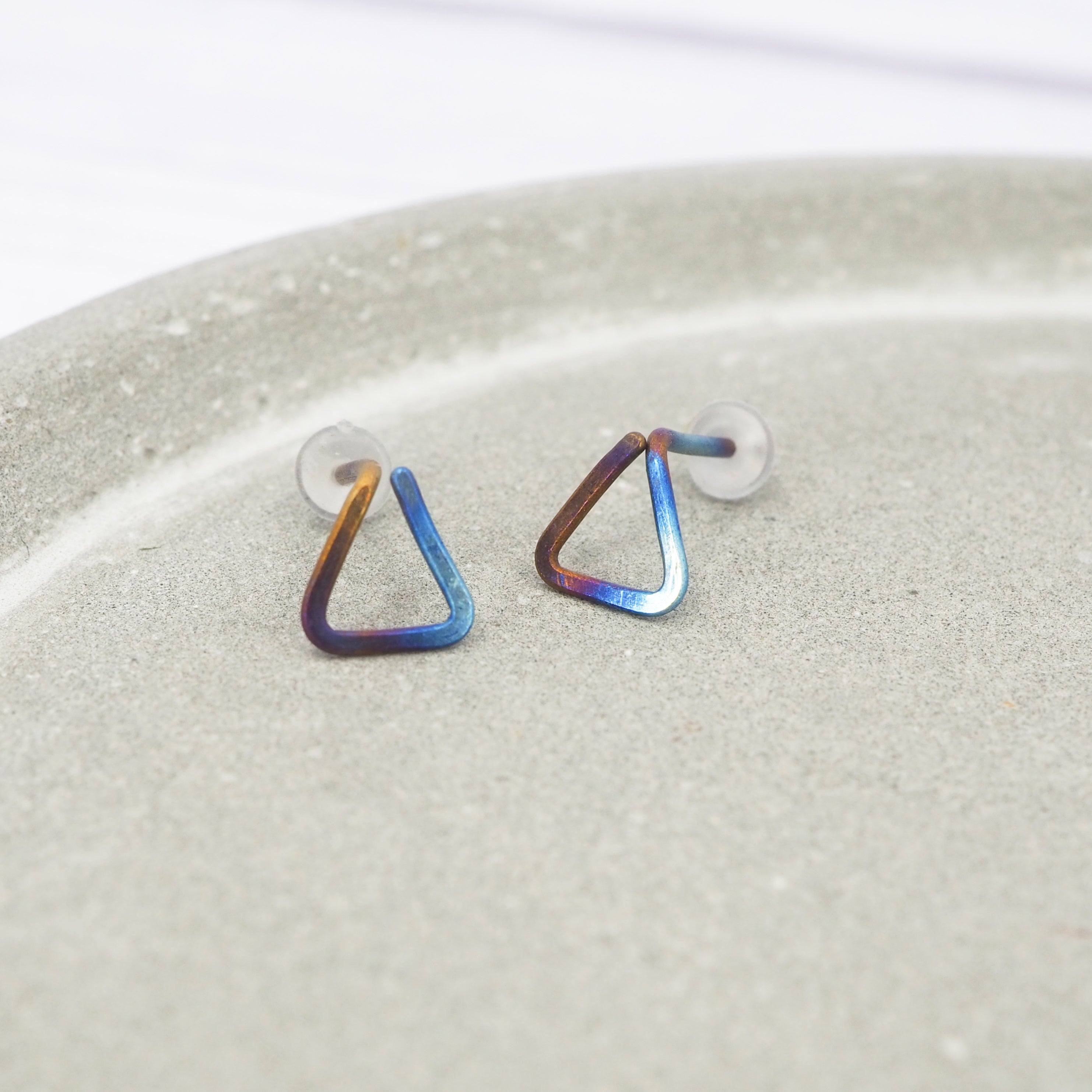 Hand formed triangle titanium stud earrings.