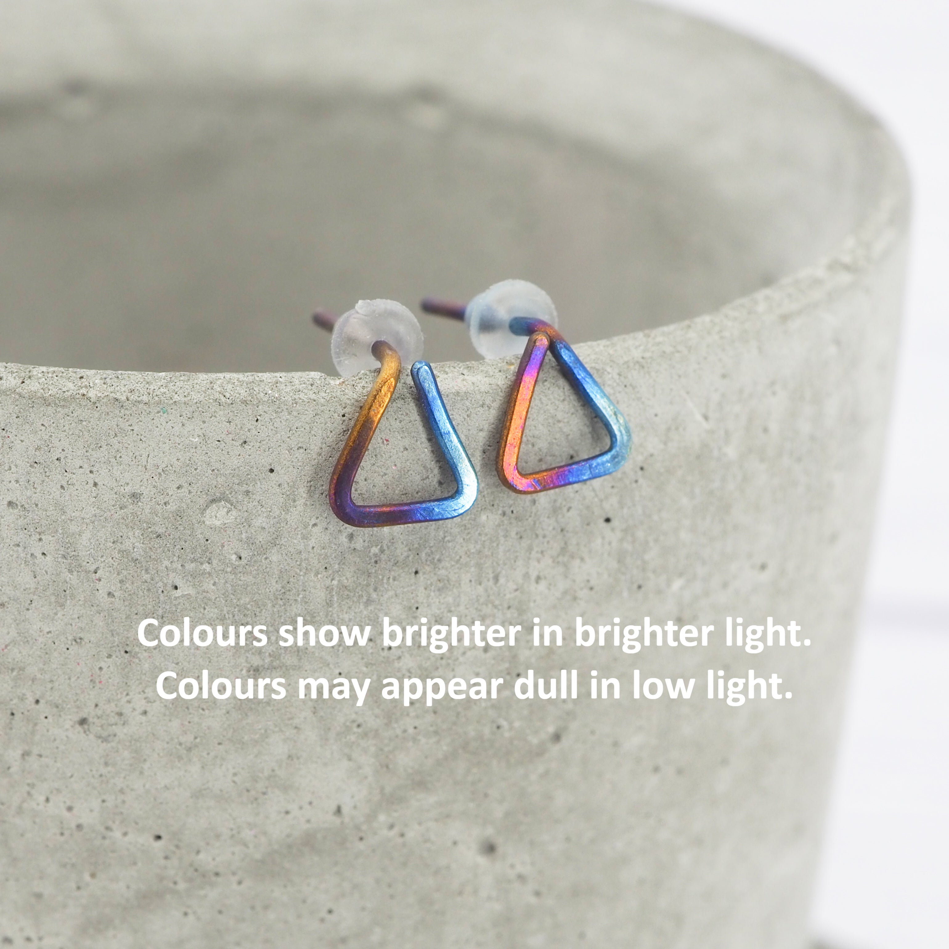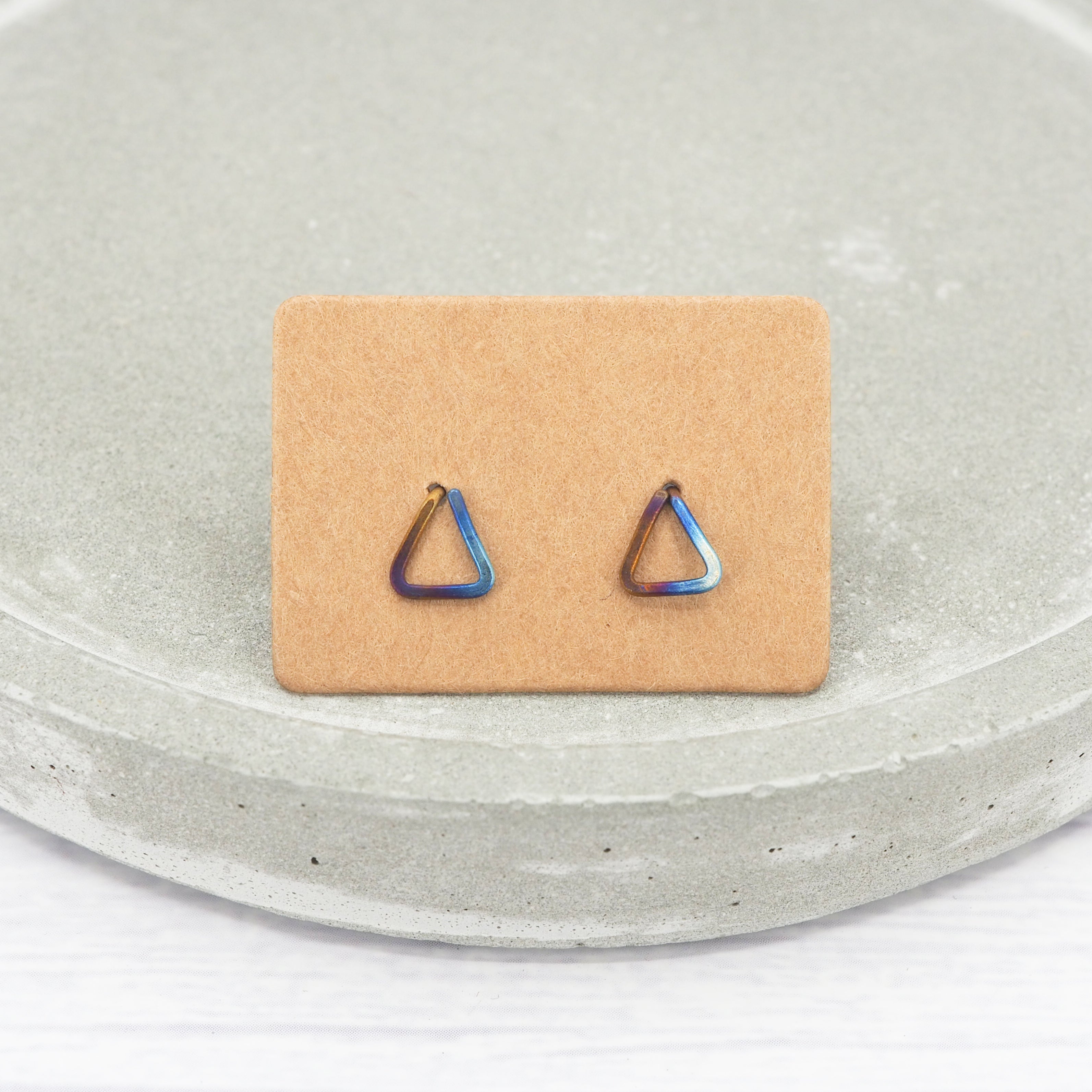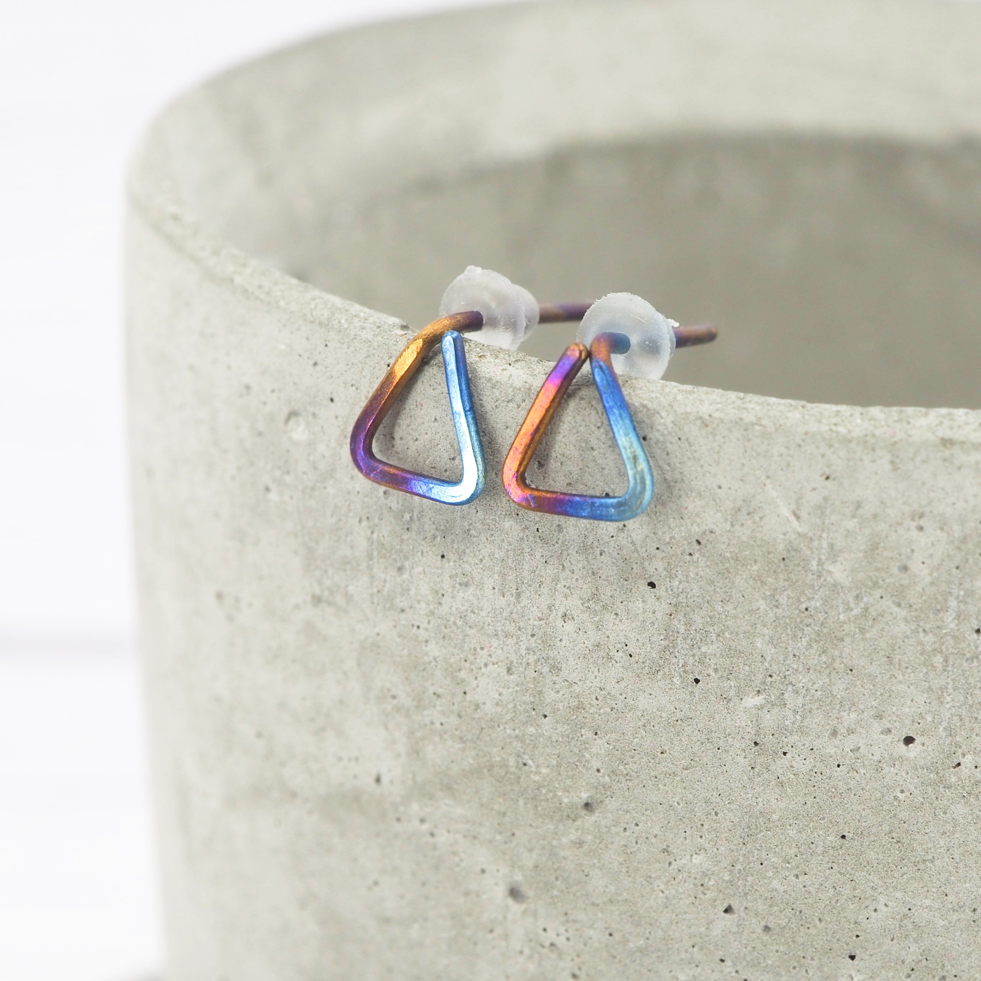 Hand formed triangle titanium stud earrings.